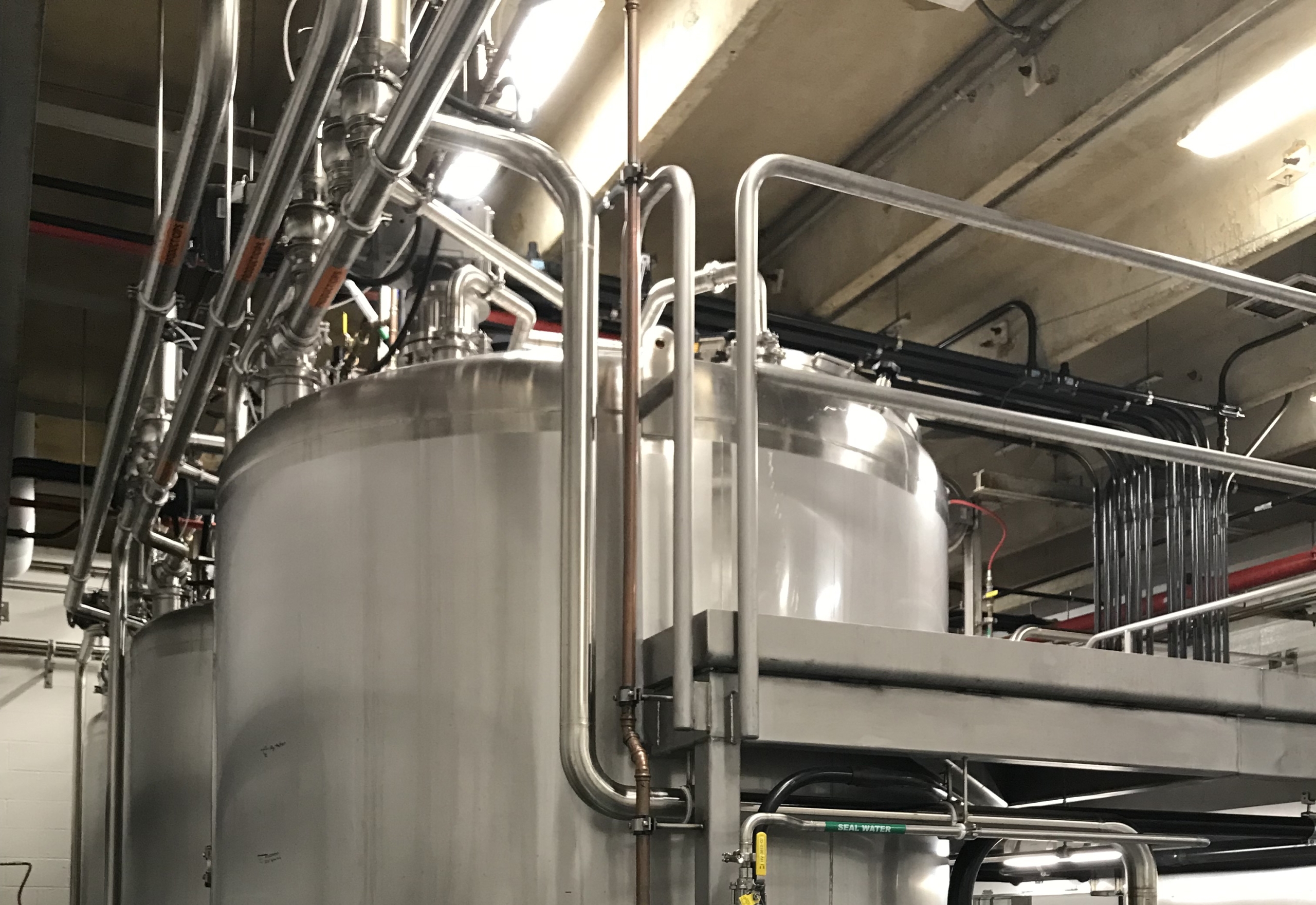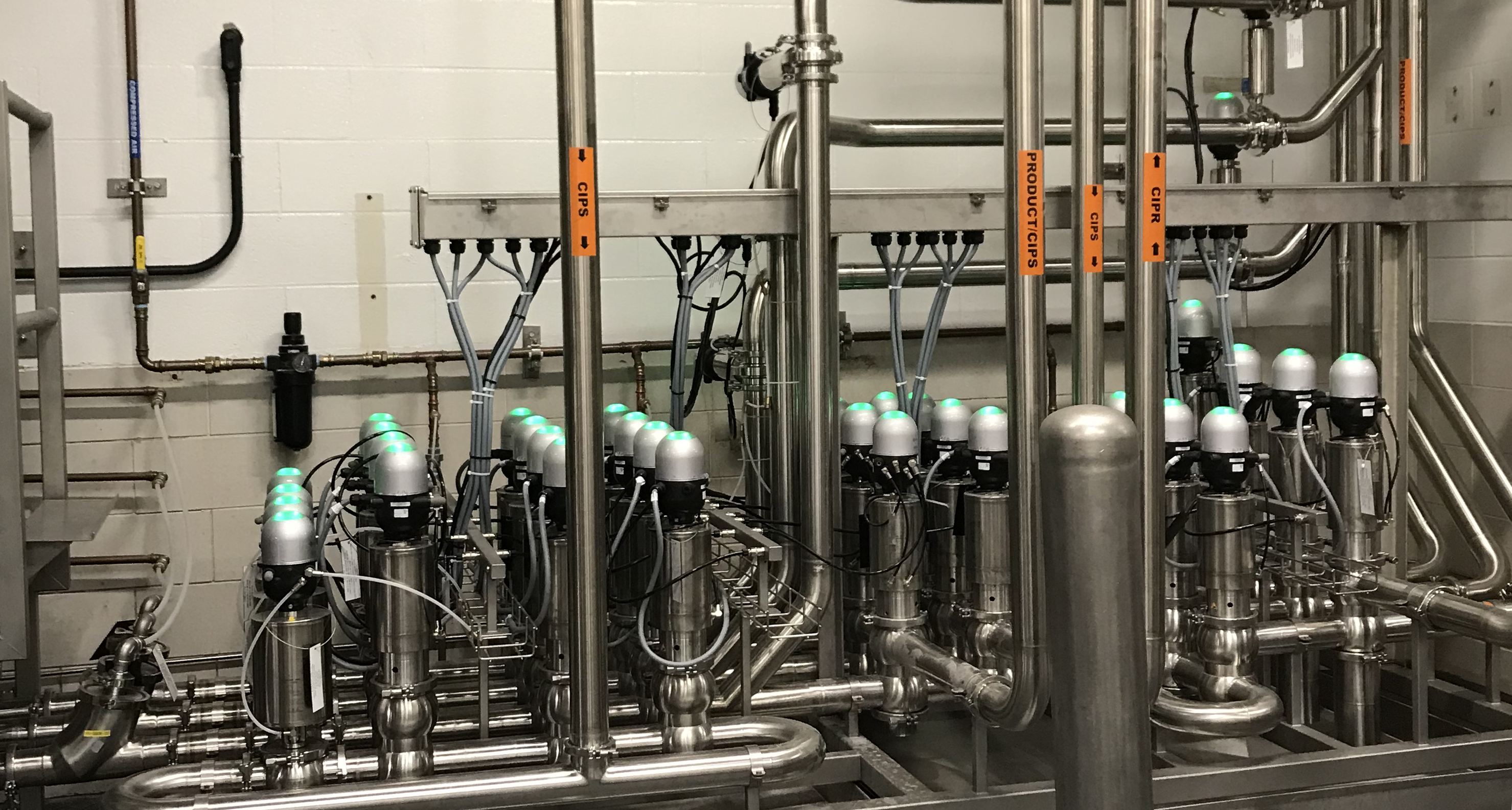 Performed building modifications (walls, doors, foundations, drains, etc.) to install new batching system to include batching tanks, product storage tanks, and new CIP System. Liquid and powder raw materials through batching and valve matrix to finished product tanks. Additional valve matrix installed to feed finished product to packaging lines. New CIP cleans two paths simultaneously. New control system to include ControlLogix PLC’s, remote panels and HMI stations running Aveva Wonderware. New power distribution with additional motor control centers. 3d design effort for more efficient constructability.